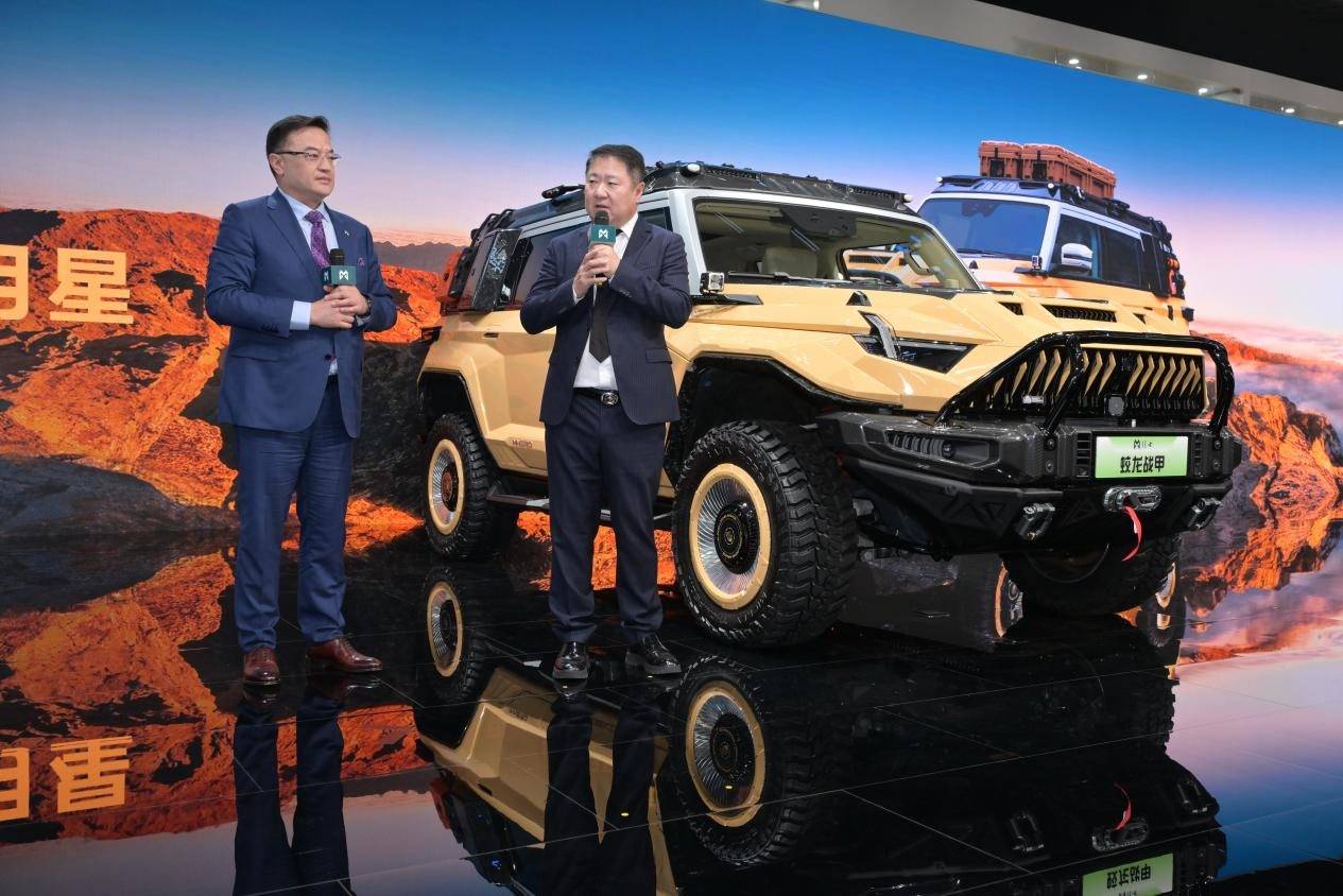 本次車展上,東風猛士科技與博納影業宣布達成戰略合作,并推出首款聯名車型—猛士917蛟龍戰甲。博納影業創始人、董事長于冬在猛士展臺正式官宣電影《蛟龍行動》,并與東風汽車集團股份有限公司黨委常委、副總經理尤崢共同為猛士917蛟龍戰甲揭幕。同時,電影主創演員蔣璐霞、高戈親臨現場,共同見證了猛士與博納攜手合作的高光時刻。