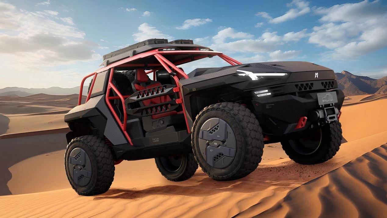 猛士M-HUNTER狩獵者將以極致性能賦予用戶一往無前的勇氣。其搭載37英寸超大極限越野輪胎和源自軍車的底盤升高技術,最小離地間隙達到425mm,可以輕松應對各種復雜路況,征服各種未知挑戰;賽車級氮氣減震系統的運用,讓猛士M-HUNTER狩獵者在極端路況下依然能給到車輛持久堅韌的支撐力;可拆卸的野行門板輔助使車輛能夠逢山開路、遇水搭橋,輕松應對各種復雜地形挑戰;全車身采用航空級高級碳纖維材質,使車身更加輕量化,在極限駕駛時提供了更強的穩定性和安全性。無論是石林攀巖、大漠豁沙,還是戈壁飛馳、峽谷征服,猛士M-HUNTER狩獵者都能如履平地,展現出真正的超能猛士風范。