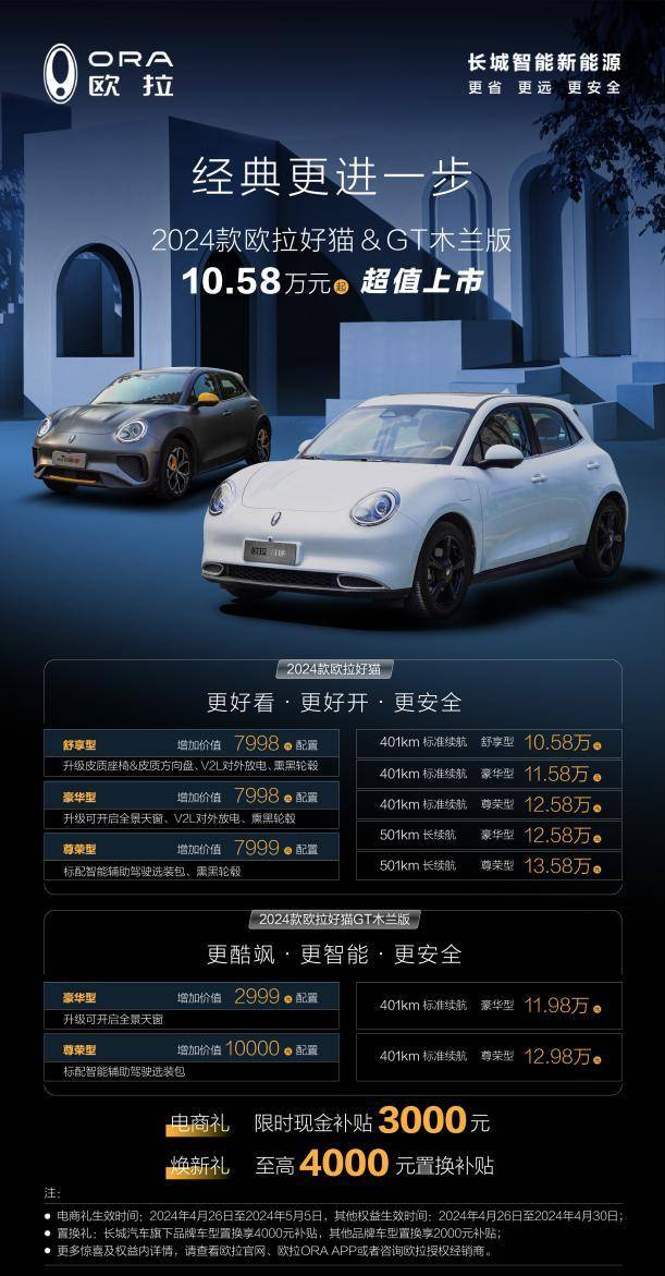 10.58萬元起! 2024款歐拉好貓&GT木蘭版超值上市