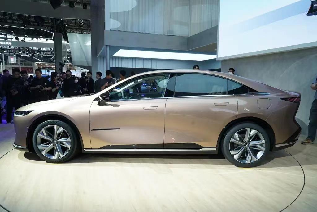 長安馬自達EZ-6側面采用了溜背造型,加之車門上內凹的線條,使其看起來頗顯流暢修長。新車還配備了無框車門和隱藏式門把手,這對于馬自達來說倒是十分罕見。