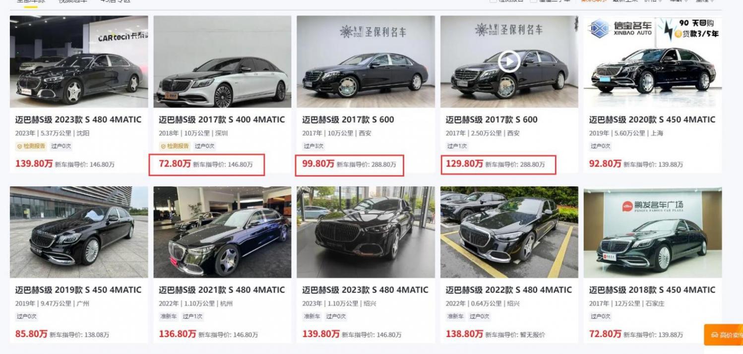 而且大家別忘了,周鴻祎這一次賣的車是二手車,二手車和新車是完全兩個(gè)概念的事情,現(xiàn)在的二手車價(jià)格只會(huì)更低了,我們上網(wǎng)搜就能搜得到了,邁巴赫S級(jí)2017款,10萬公里的里程,新車146.8萬,二手朝著對(duì)折上面砍,只要12.8萬,哪怕是高配的2017款,七年下來也只剩下99.8萬,哪怕航程沒那么高的車,價(jià)值也只剩下129.8萬了。