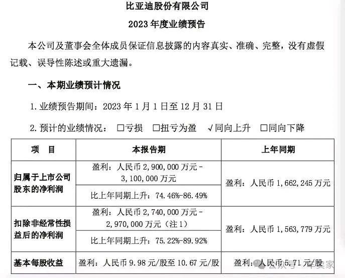 除了在銷量上一騎絕塵之外,比亞迪2023年也是賺的盆滿缽滿,近日比亞迪發(fā)布公告顯示2023年比亞迪預計盈利290億到310億,意味著比亞迪日賺將近8000萬,就問各位服不服!當一些車企還在為活著而掙扎的時候,比亞迪已經(jīng)過上了小康的生活!