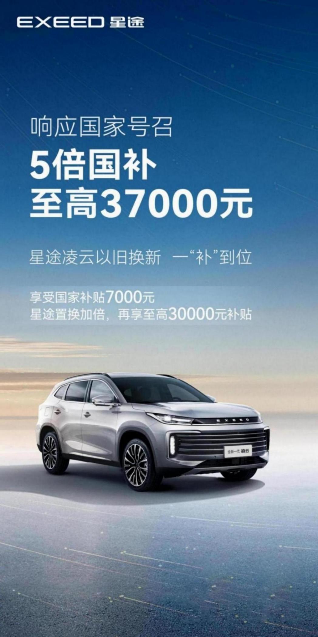 星途汽車也第一時(shí)間積極響應(yīng)國(guó)家以舊換新號(hào)召,開(kāi)展“價(jià)到底 換到位”全系鉅惠活動(dòng),即日起至2024年12月31日期間,消費(fèi)者報(bào)廢國(guó)三及以下排放標(biāo)準(zhǔn)燃油乘用車或2018年4月30日前注冊(cè)登記的新能源乘用車,并選購(gòu)星途全系車輛,可享最高補(bǔ)貼37000元;