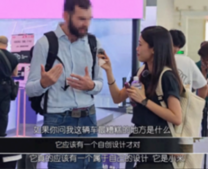 車展媒體日當天,我們就做了一個“外國人如何評價小米SU7”的選題,老外普遍覺得SU7的設計很成功,但同時也認為它的成功是建立在另一個更成功的模版上的。不過,被采訪的老外們都很識趣,沒有像某些國外UP主那樣,直接點出“模版”是誰。