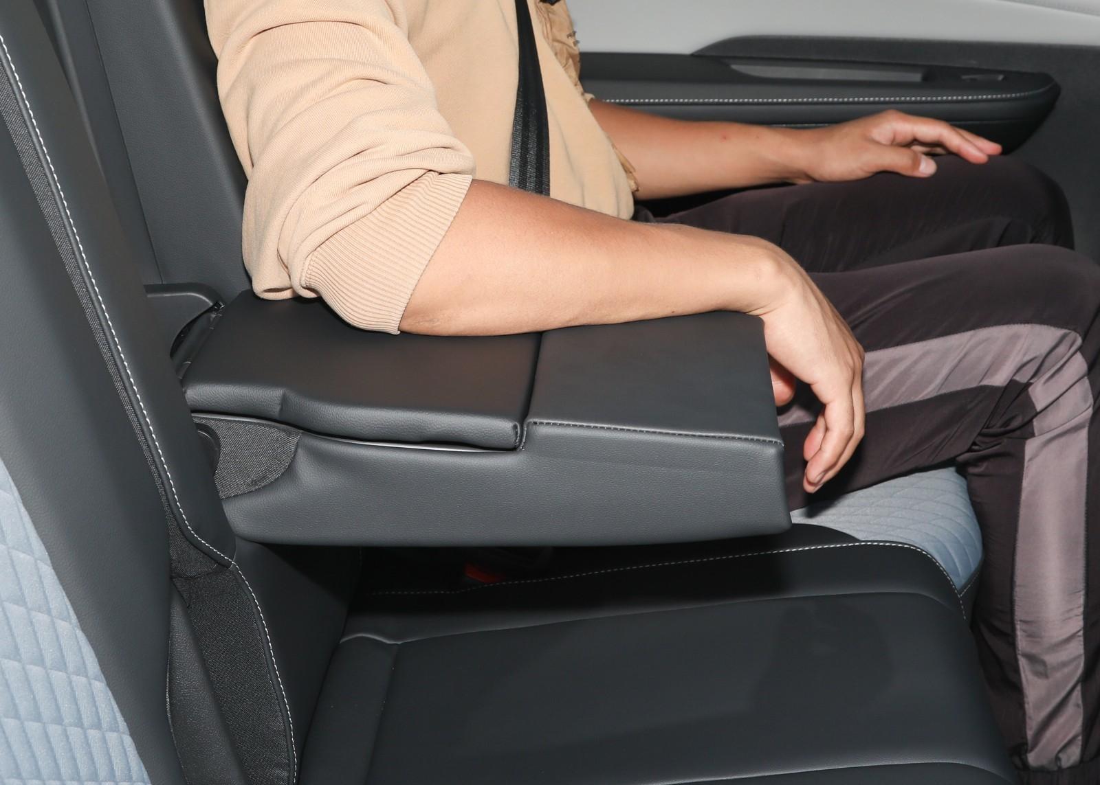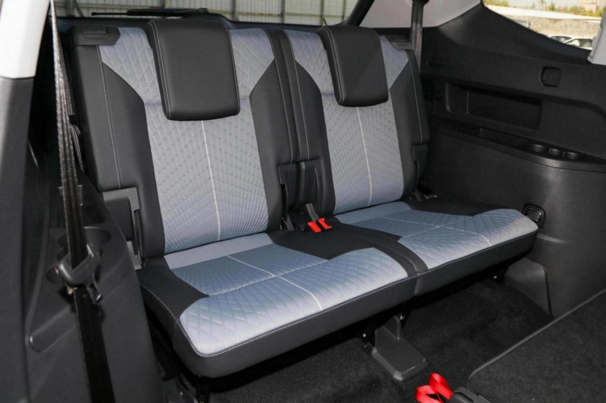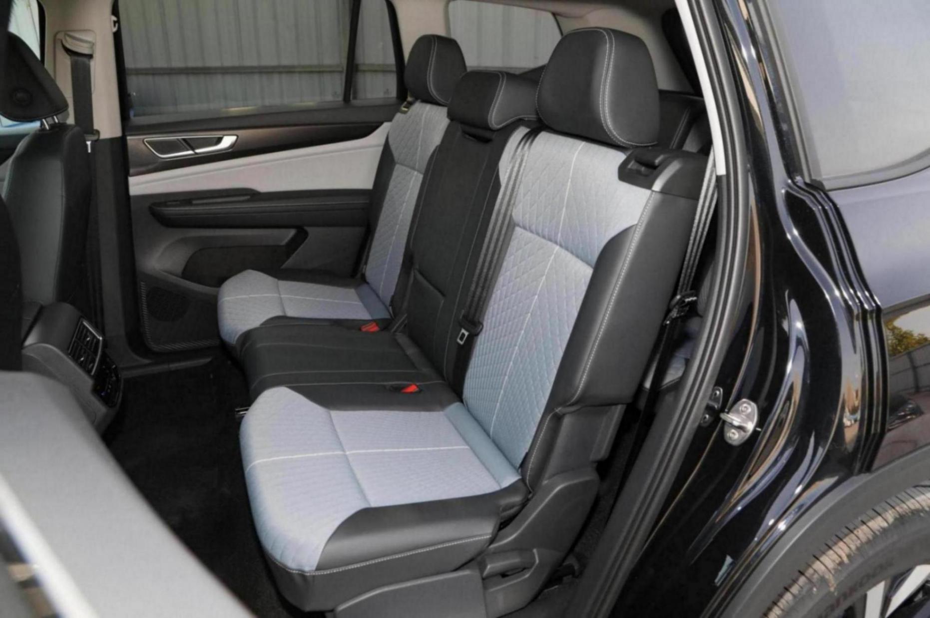 該車定位為中大型SUV,車身尺寸長5.052米、寬1.989米、高1.773米,軸距2.980米,尺寸屬于同級別上游水準。座椅采用2+3+2布局,使用的是皮織混搭材質(zhì)覆蓋,質(zhì)感一般,但柔軟度不錯,加上前排座椅帶有8項電動調(diào)節(jié),對于腰部與頭部的舒適性設(shè)計得比較到位;第二排座椅支持前后移動、靠背角度調(diào)節(jié),還配備扶手。在保證第三排舒適性的情況下,第二排的腿部空間約1拳3指,第三排約1拳1指腿部空間,整體表現(xiàn)不錯。