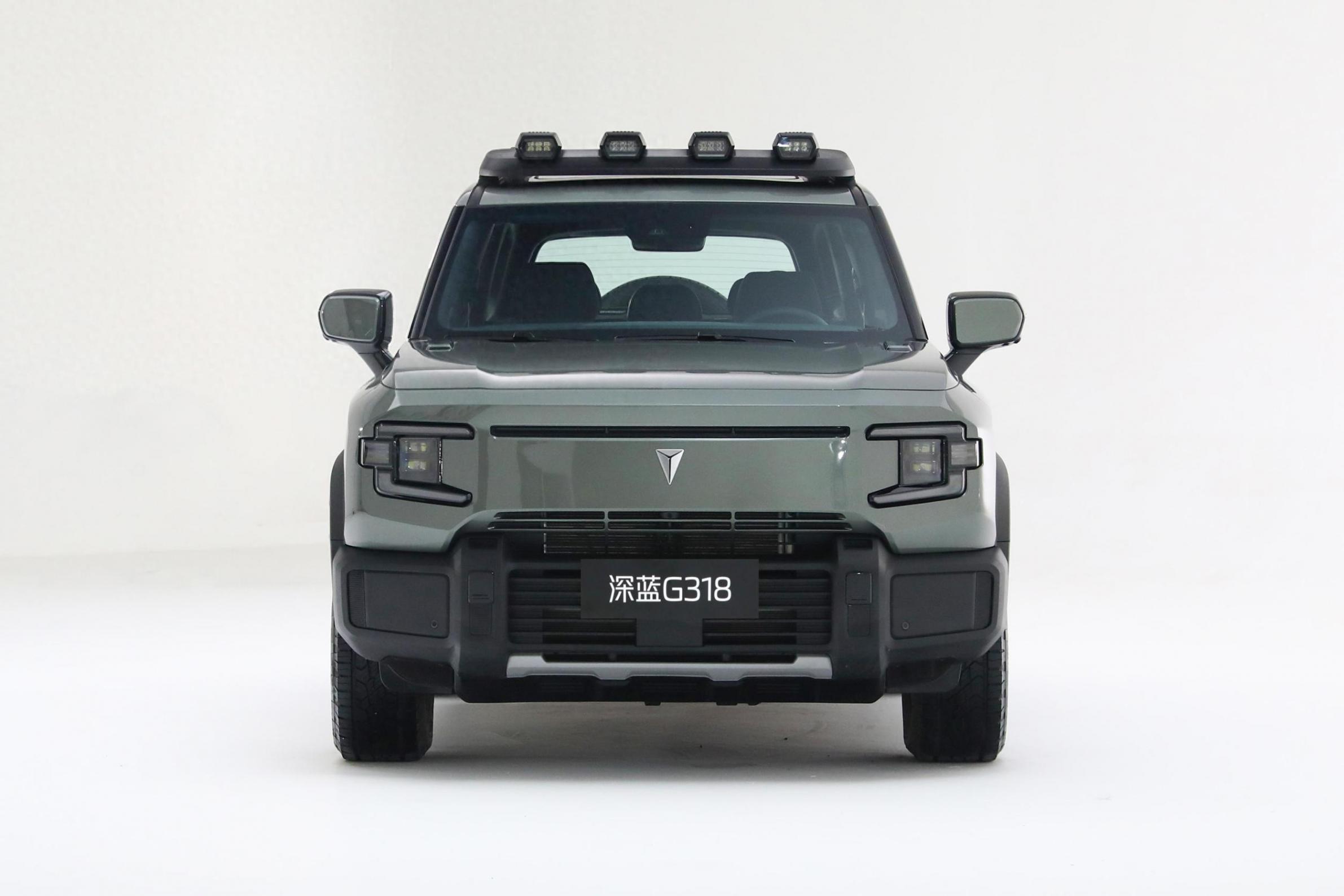 深藍G318在外觀方面,還是很有特點的,有自己獨特的風格,第一眼給人的觀感還是比較不錯的,前包圍的設計有些硬派SUV的味道,車輛的接近角也是比較可觀,通過性也是有所保障,整體設計,辨識度還是比較高的,符合這兩年的潮流。