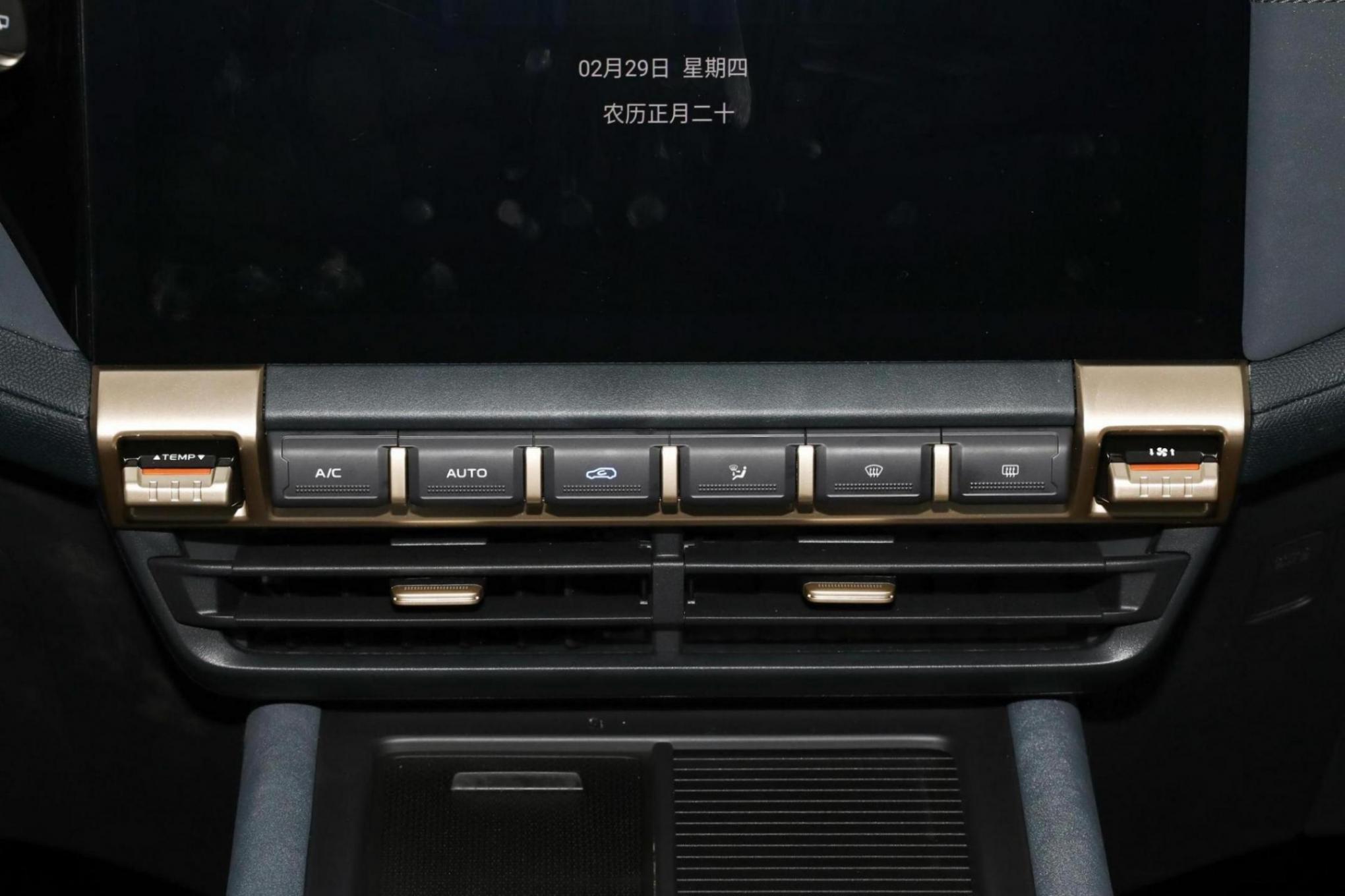 深藍G318在內飾方面,提供多種顏色搭配方案可以選擇,滿足不同消費者的需求,整體的用料也是比較扎實,提供大量軟性材質和翻毛皮,空調操作區采用實體按鍵,比較實用,一些細節還增加了金色裝飾件作為點綴,提升了精致感,車內還提供31處儲物空間,全液晶儀表和中控大屏也是必不可少。