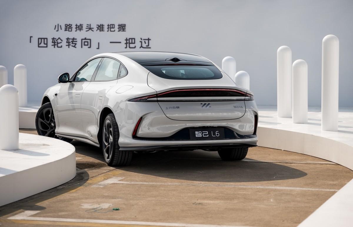 四輪轉(zhuǎn)向不是什么新鮮活,當(dāng)年雪鐵龍富康不就早早就用上了,只不過那會兒是后輪被動轉(zhuǎn)向,現(xiàn)在主要是后輪主動轉(zhuǎn)向。有了后輪轉(zhuǎn)向能力之后,車長近5米的中大型車智己L6,開起來可以像小型車一樣靈活,轉(zhuǎn)彎半徑只有4.99米。一把掉頭?輕輕松松~