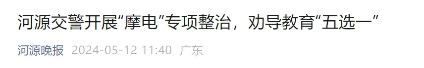 最近廣東河源就開展了摩電專項整治,對于不佩戴安全頭盔、超員、闖紅燈等交通違法行為,持續開展“五選一”勸導活動,對于車主來說,其實在處罰這方面是更加“寬松”了。