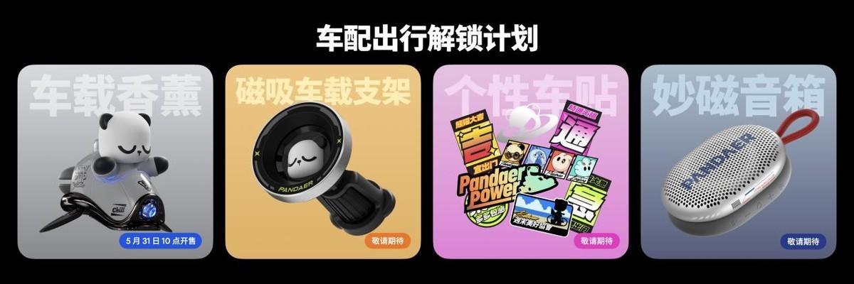 「車配出行解鎖計劃」首批為大家帶來的是:潮流車貼和車載香薰,妙磁車載手機支架、妙磁音箱也即將上線,除了這些產品之外,PANDAER 也同步開啟共創計劃,讓你的夢想在泡泡都市變成現實。