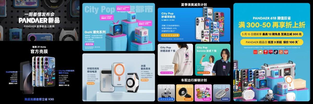 魅族 21 Note 特種兵計劃開啟,PANDAER City Pop 潮流新主題產品同樣精彩上新。魅族 21 Note 手機殼膜現已同步開售,妙磁抗菌殼售價 89 元起,殼膜套餐立減 30元。35W/40W/67W 新 City Pop GaN 潮充系列現已開售,售價 89 元起。防曬涼感 T 恤 將在 5 月 17 日 10:00 現貨開售。另外特別為游戲特種兵們準備的冰能散熱背夾即將開售,敬請期待。