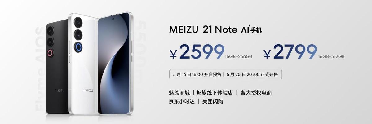 目前,魅族 21 Note 手機特種兵已在魅族商城、魅族線下體驗店、各大授權電商平臺開啟預售,16GB+256GB 售價 2599 元, 16GB+512GB 售價 2799 元,5 月 17 日 10:00 即可前往魅族線下體驗店參加新品品鑒活動,5 月 20 日 20:00 全渠道正式開售,首銷購機享至高 6 期免息以及專屬福利。