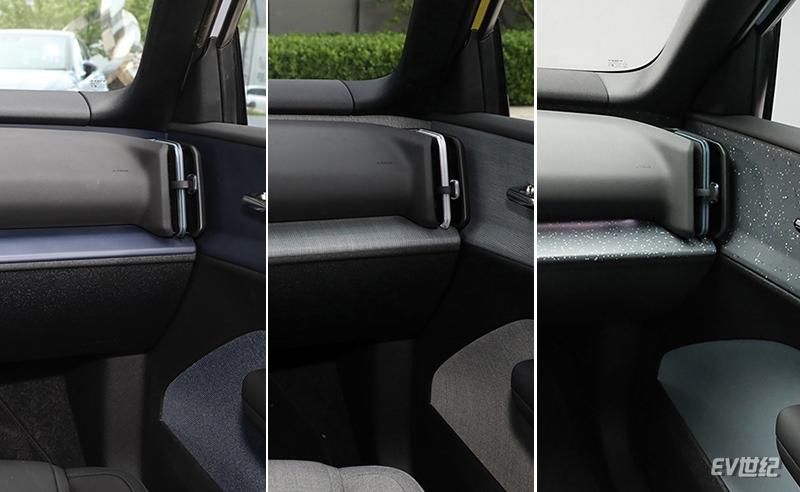 車內看起來平平無奇的各種材料,實際上大有門道。偏藍色的飾板采用了高檔成衣和奢侈品箱包中的丹寧元素,灰白編織飾板是極為環保的天然亞麻,繁星飾板更是讓每一輛EX30都是獨一無二的。