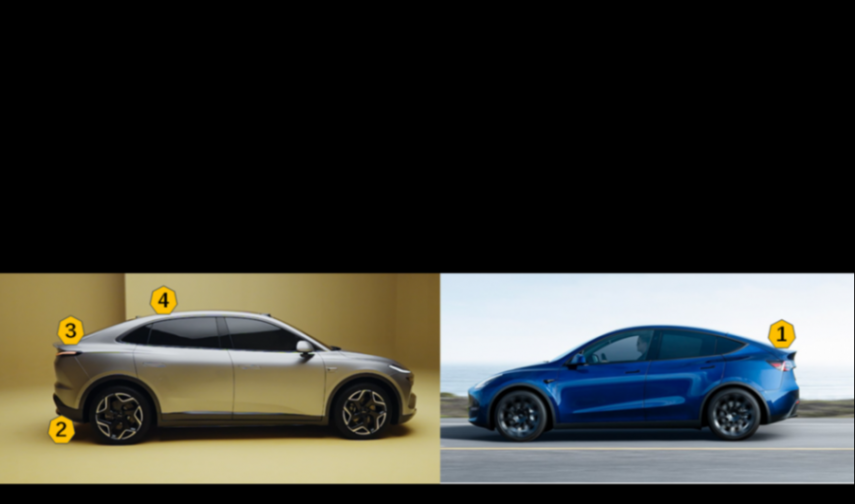 需求決定設計的整體。為了增大前排的空間,樂道A柱要向前移動,樂道的車頂要采取溜背式的設計,為了擁有更好的續航里程,設計師需要考慮空氣動力學,需要巨大的溜背式設計,車尾還設計了鴨尾,它可以降低風阻系數,提高續航里程。當我們實現了這兩點,很容易創造一臺與model y非常相似的產品,但如果與Model Y競爭,我們還需要讓它更加好看。