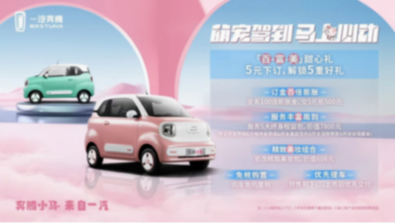 好看、好玩、好開、好省、好安全的奔騰小馬在今年的4月30日,奔騰小馬正式開啟預售,共發布3款車型、6種車身顏色,其中122km萌趣馬預售價2.89萬元、170km元氣馬預售價3.19萬元、170km活力馬預售價3.49萬元。更驚喜的是,萌友們僅需5元下訂,即可解鎖包含訂金百倍膨脹、官改精致美妝包、整車及三電終身質保在內的5重好禮。可以說一汽奔騰寵粉絕對是寵到天了!