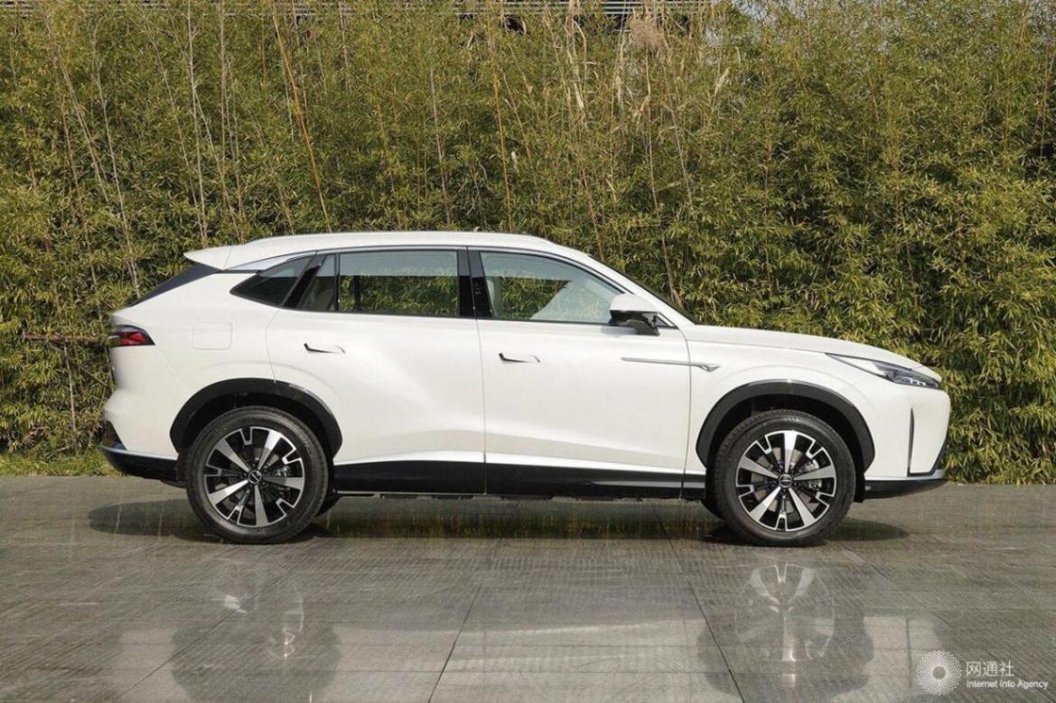 新車側面同樣采用較為簡潔的設計風格,略微上揚的車側腰線從車頭一直延伸至尾部,搭配向外凸出的輪拱與五輻式輪圈動感十足。此外,黑色飾板巧妙地加大了C柱視覺上的傾斜角度,配合車頂擾流板組件與棱鏡貫穿尾燈極具辨識度。車身尺寸方面,該車長寬高分別為4700/1890/1664mm,軸距為2765mm。