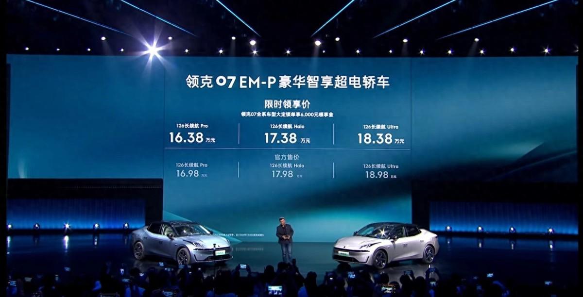5月17日,領克品牌首款新能源中型轎車07EM-P迎來正式上市,售16.98-18.98萬(6月30日前可享16.38-18.38萬限時價)。