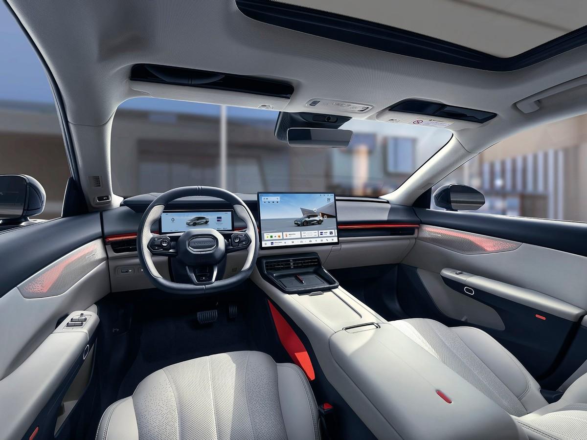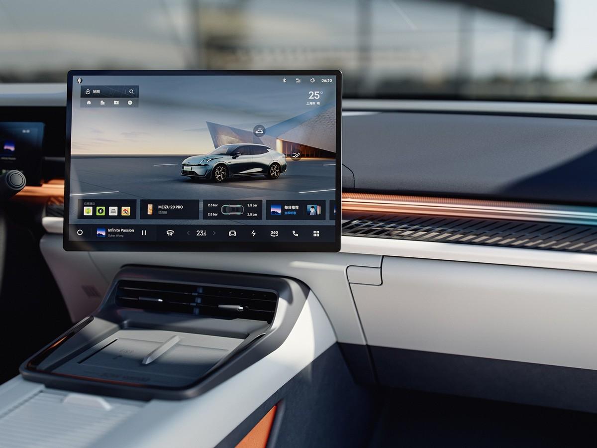 內飾方面,主打簡約。搭載長方形的12.3英寸全液晶儀表盤和15.4英寸中控屏幕,中控屏幕擁有超窄邊框設計、向日葵設計、2.5K分辨率。搭載LYNK Flyme Auto魅族車機系統,內置吉利自主研發的“龍鷹一號”芯片(算力與高通8155相仿)。