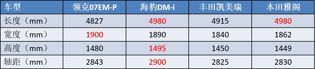 尺寸方面,領克07EM-P雖然定位為中型車,但是它的身材卻沒有像當下大部分新推出的中型車那樣追求以大為美,而是表現得比較克制。長寬高分別為4827/1900/1480mm,軸距為2843mm,在同級中不算突出。