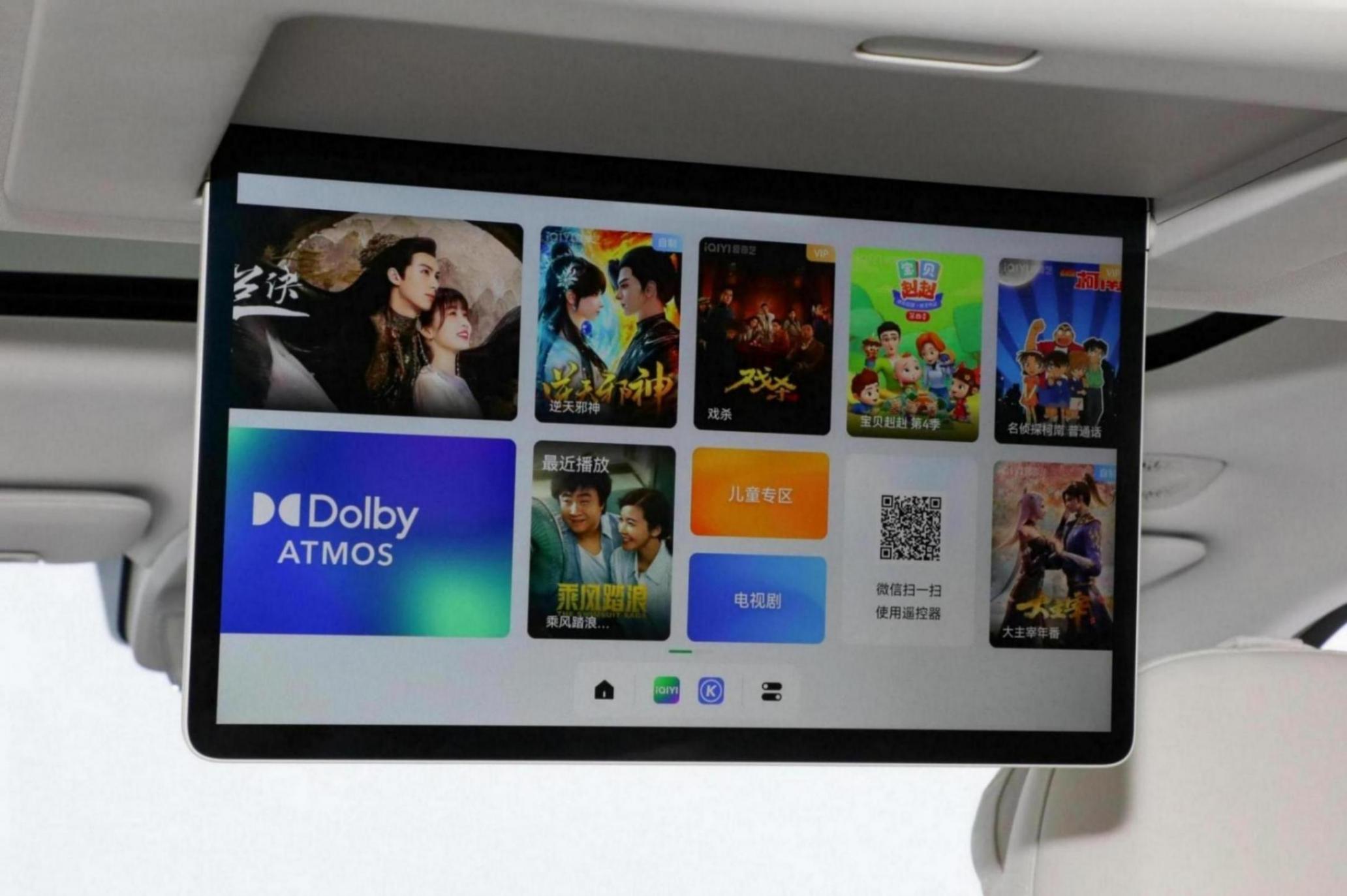 座椅方面,新車采用2+2+2六座布局方案,其中第二排為雙獨立座椅,支持調動調節、加熱、通風以及145度大仰角靠背,并且副駕駛靠背還設有小桌板。”沙發“有了,“彩電”當然不會缺席,新車后排車頂還提供15.6英寸吸頂屏,支持語音控制、App遙控、觸控、主駕等4種操作方式,操作非常方便。