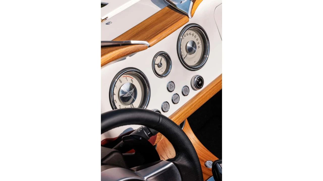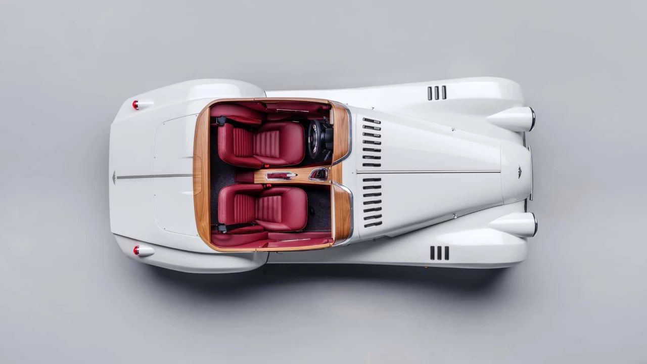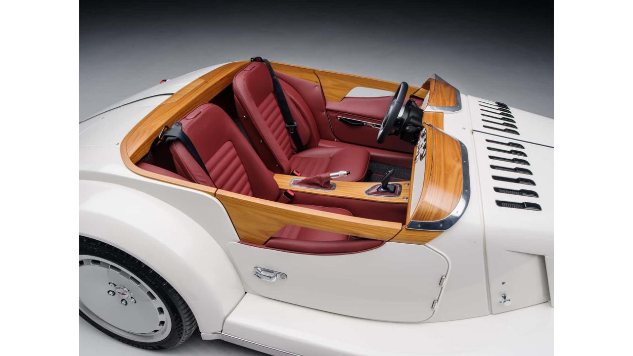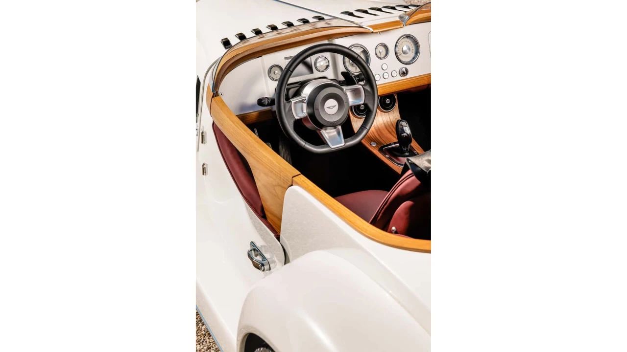 車頭上的圓形大燈比Plus Six上的還要大,并且整合了轉向燈和日間行車燈。前葉子板上的全新設計暗示了摩根未來的全新語言,裸露在外的木質結構與獨特的肩線則彰顯了經典的Barchetta風格。