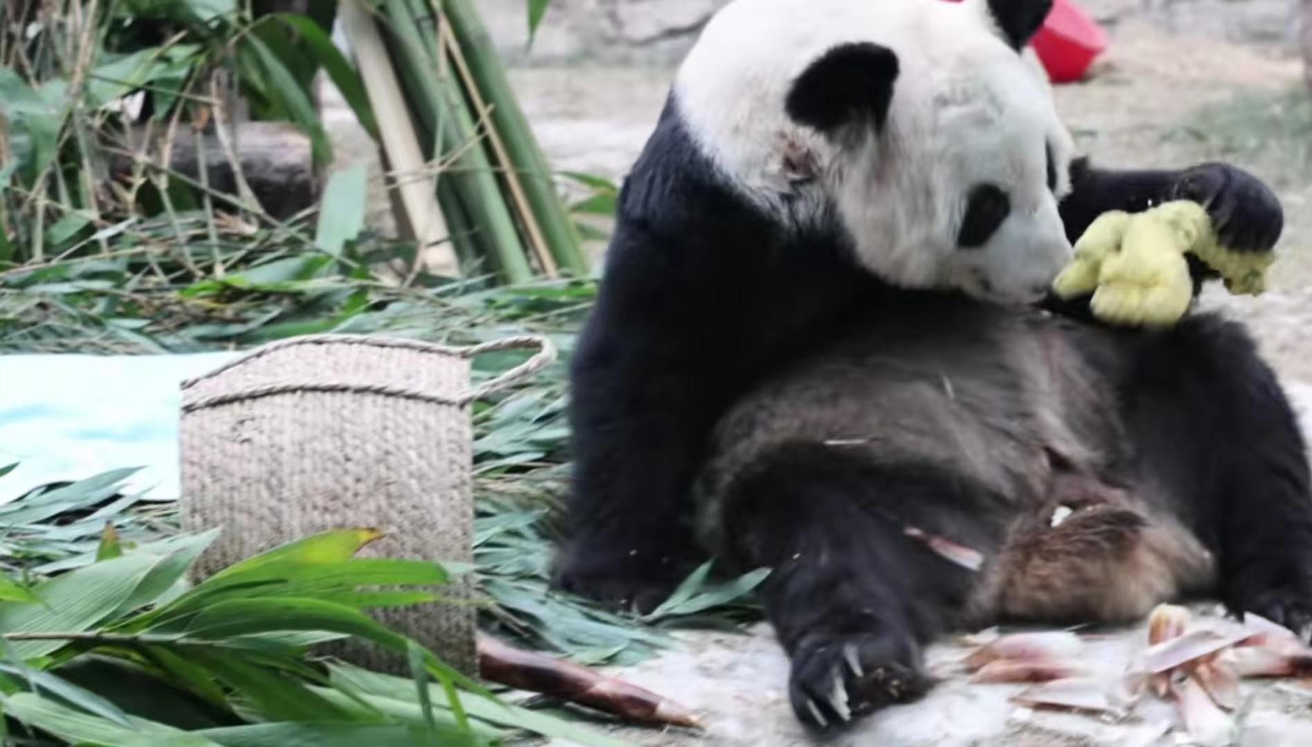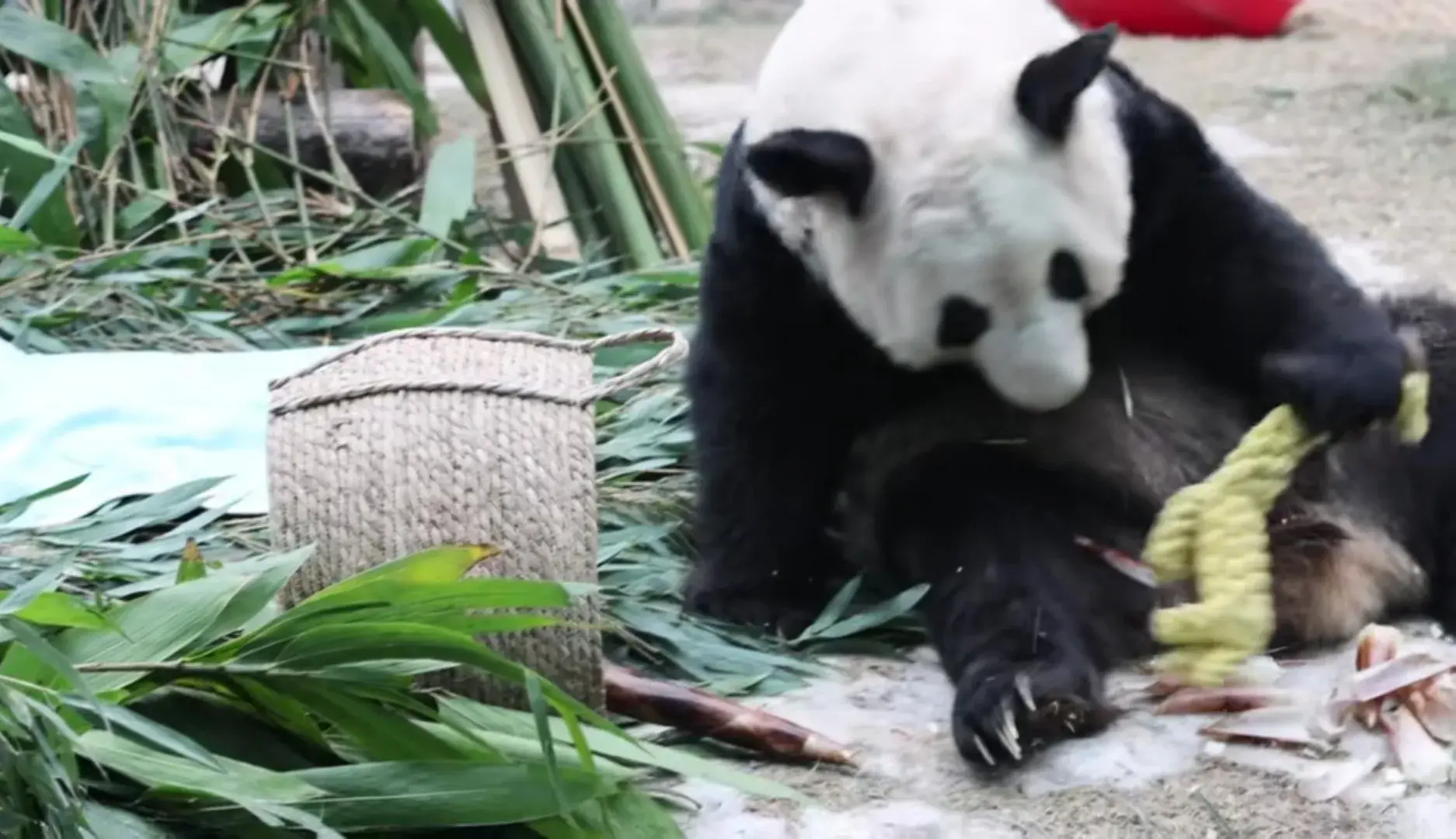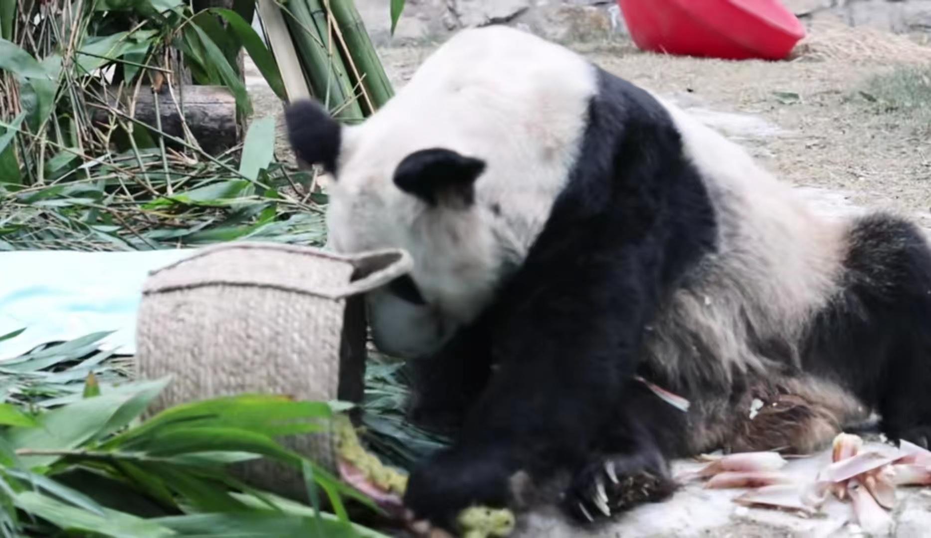 北京動物園官方更新了大熊貓“丫丫”最新的吃播視頻。李奶爸為“丫丫”準備了它平時最愛吃大筍筍和胡蘿卜。