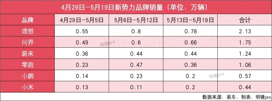 新勢力5月第三周銷量:理想第一,小米重回2000+,哪吒仍未過千