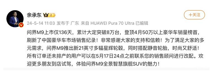 根據(jù)余承東近日在社交媒體發(fā)文顯示,問界M9上市僅136天,累計(jì)大定突破8萬臺(tái),不僅登頂了4月份50萬以上豪華車的銷量榜首,同時(shí)刷新了中國豪華車市場的銷量紀(jì)錄,換句話來講,目前50以上的高端豪華SUV,問界M9是最受歡迎的一款車,沒有之一,那么問題就來了,問界M9為什么這么受歡迎?