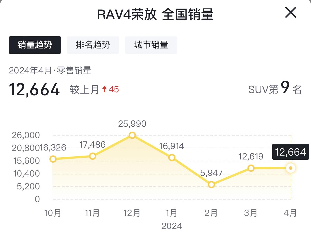 第9名,豐田榮放,月銷12664輛。這車最近的負面消息很多,例如車身生銹、顆粒捕捉器堵塞等問題,但同樣是架不住價格低呀,部分地區低配的榮放裸車能干到12萬多,落地都不到14萬了。