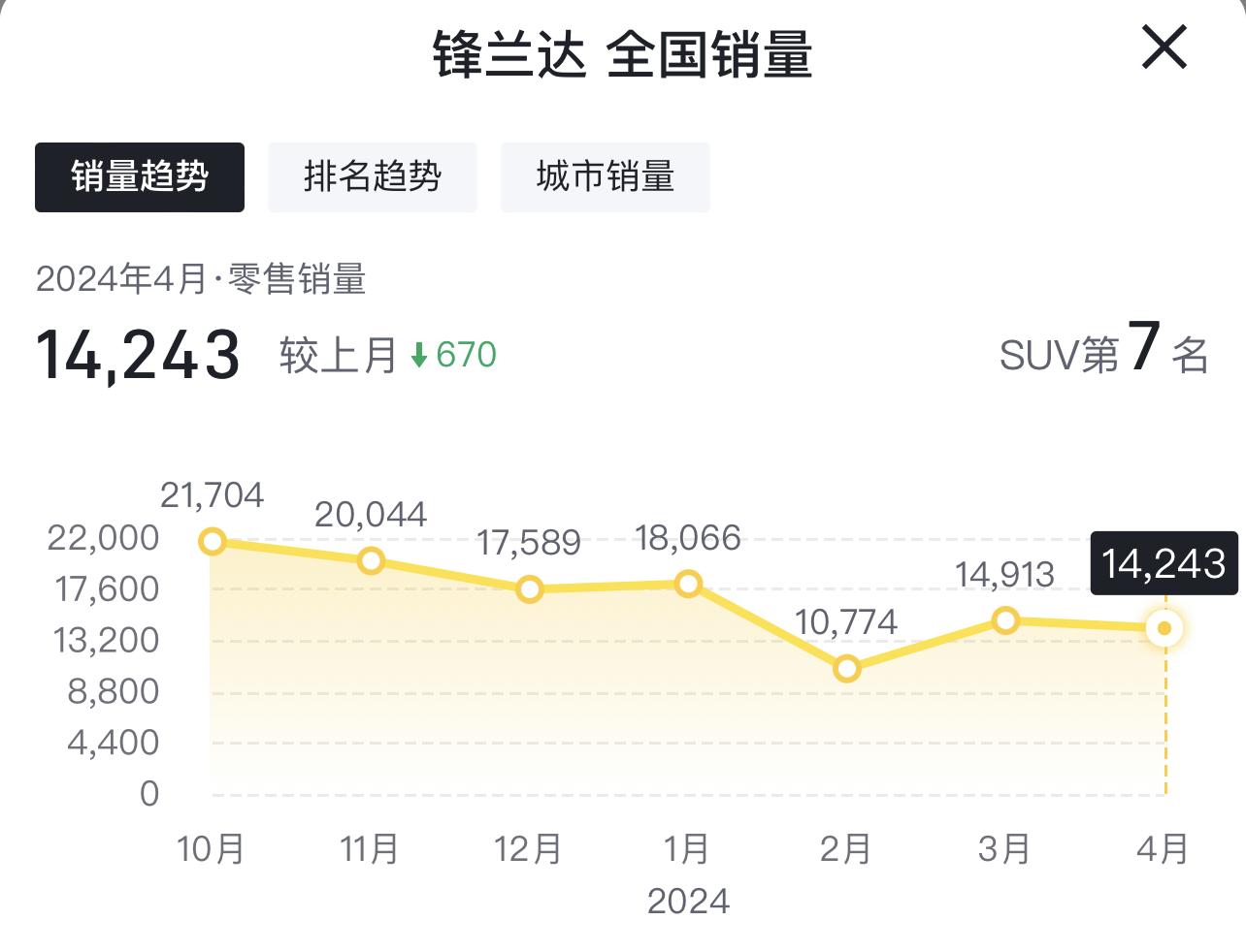 第7名,豐田鋒蘭達,月銷14243輛。優缺點和卡羅拉銳放一樣,主要是外觀和配置等細枝末節的差距,這里不再贅述。