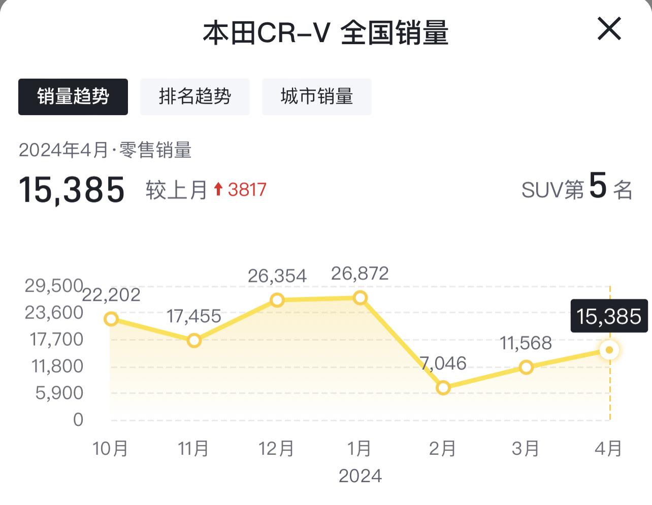 第5名,本田CR-V,月銷15385輛!德系SUV油耗高,豐田日產動力弱,本田CR-V卻兼顧了油耗和動力,而且空間很大,但隔音也是真的差!