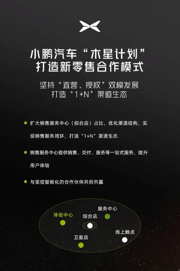 2023年9月,小鵬汽車公布木星計劃,主要內容是轉變銷售模式,由直營模式向經銷商模式轉型。具體做法很簡單,將全國24個銷售區縮減為12個,并逐步淘汰效率低下的直營門店,同時擴大代理經銷商的門店規模。