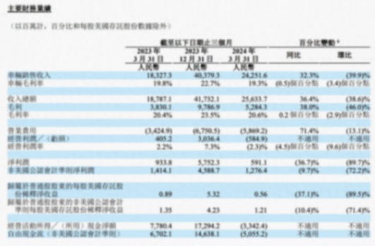 據消息,理想汽車對外公布了其2024年第一季度財報。財報顯示,理想汽車第一季度的營收總額為256.3億元,同比增長36.4%,此前市場預估為255.8億元;第一季度經調整凈利潤為13億元(扣除股權激勵費用),同比下降9.7%;毛利率為20.6%,同比變化不大,但環比上一季度的跌幅達到2.9%,其中最主要的原因是車輛的毛利率下降。