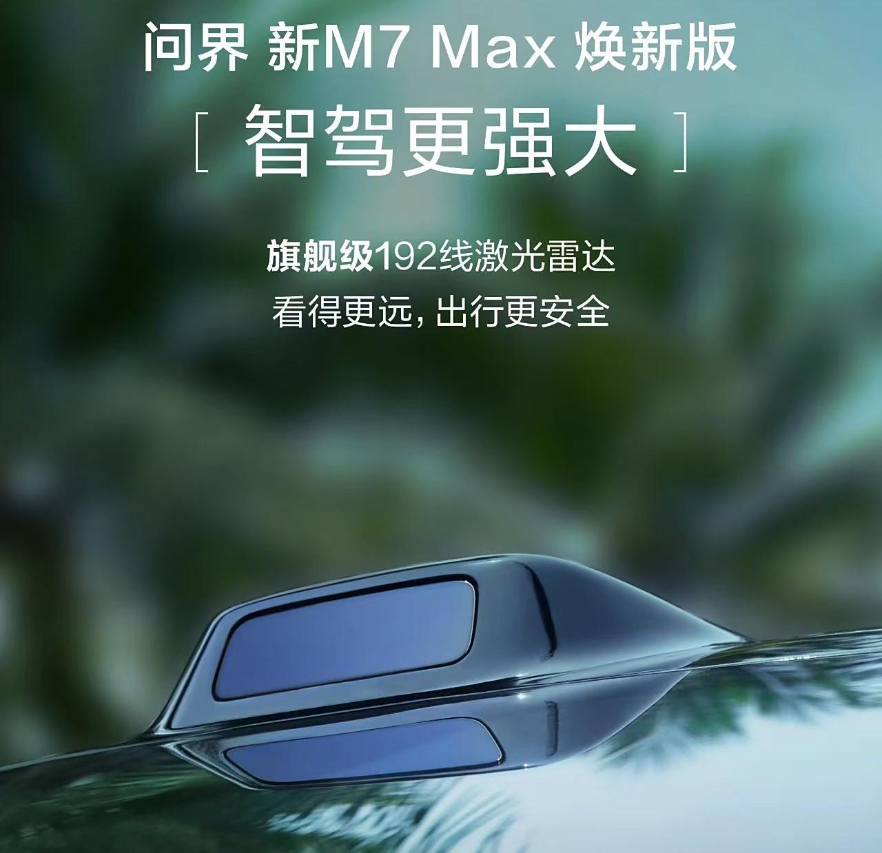 而前擋風玻璃的正上方也配有激光雷達,在內部造型上與現款車型也略有不同,預計會更換為問界M9同款的192線激光雷達(現款問界M7為126線),當然這也是為了配合華為本家全國道路都能開的高階智駕輔助系統。