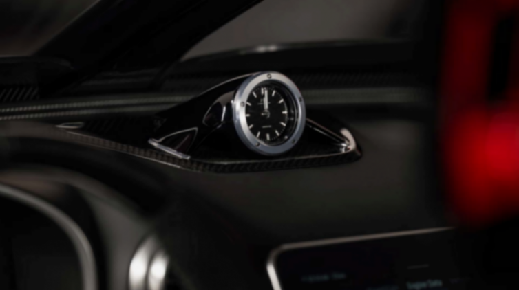 內飾部分暫時沒有得到展示,不過我們能看到不少碳纖維材質,并且還有一個類似保時捷SC的計時器,我們則很好奇是否會附送兩個頭盔。