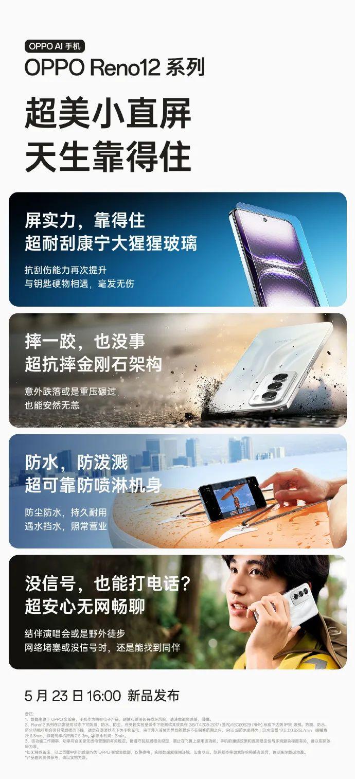 同時(shí),OPPO Reno12系列還將配備超耐刮康寧大猩猩玻璃、超抗摔金剛石架構(gòu)、超可靠防噴淋機(jī)身、超安心無(wú)網(wǎng)暢聊。