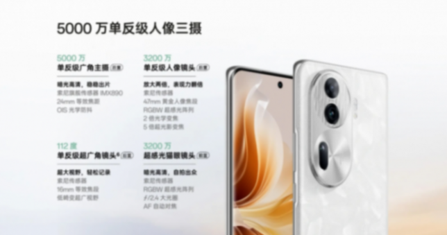 影像方面,OPPO Reno11前置3200萬(wàn)鏡頭,后置5000萬(wàn)主攝(LYT600,26mm等效焦距,OIS光學(xué)防抖)+800萬(wàn)超廣角鏡頭+3200萬(wàn)長(zhǎng)焦鏡頭組合;OPPO Reno11 Pro前置3200萬(wàn)鏡頭,后置5000萬(wàn)主攝(IMX890,24mm等效焦距,OIS光學(xué)防抖)+800萬(wàn)超廣角鏡頭+3200萬(wàn)長(zhǎng)焦鏡頭組合。