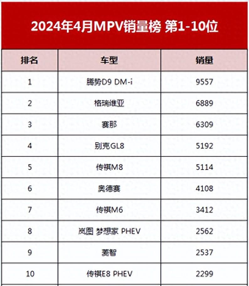 同時,廣汽集團的多款MPV擠進了榜單前十,傳祺M8作為一款銷售多年的MPV車型在四月取得了5114輛的銷量。力壓本田的經典車型奧德賽位居第四位。
