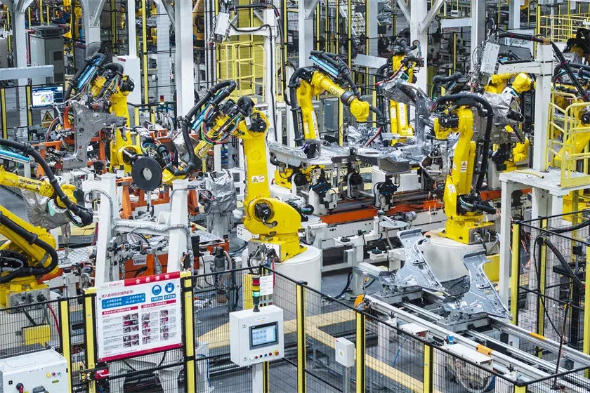 該工廠涵蓋沖壓、焊裝、涂裝、總裝四大車間,采用6600T壓鑄機(jī)與全自動(dòng)高速同步生產(chǎn)線的沖壓車間,不僅兼顧了品質(zhì)與效率,還提升了新車車身剛性,進(jìn)一步強(qiáng)化了安全性。整個(gè)工廠1000臺(tái)AI機(jī)器人協(xié)同作業(yè),并且通過AI品控系統(tǒng),實(shí)現(xiàn)100%自動(dòng)化在線測(cè)量、檢驗(yàn)。