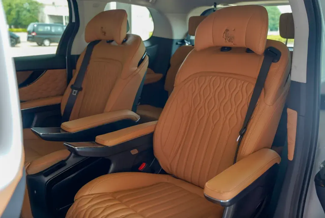 高端MPV最注重的是乘坐舒適感,風(fēng)行星海V9采用了皮質(zhì)座椅,座椅寬大厚實(shí),支撐性和舒適性不錯(cuò)。座椅布局上,采用的是2+2+3座椅布局,前排座椅配置也給的十分到位,主駕駛位配備了10向電動(dòng)調(diào)節(jié)、副駕駛位配備了8向電動(dòng)調(diào)節(jié),并且兩張座椅均支持座椅加熱通風(fēng)以及按摩功能。