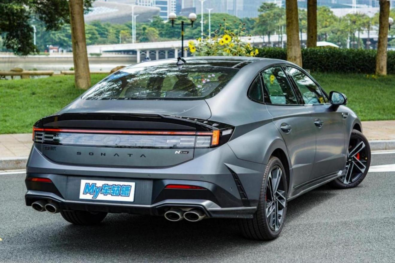 側面腰線凌厲,熏黑的輪轂搭配紅色卡鉗增強運動感,尾部新增后擾流板和尾翼,雙邊四出的排氣造型已經在昭示它的性能實力。另外熏黑的LOGO,還有前格柵、后備箱與翼子板處都突出了N Line標識。原廠自帶改裝,幾乎無死角的高顏值造型,令第十一代索納塔在B級車中非常出眾。不得不說,韓系車在設計這塊“拿捏得死死的”。