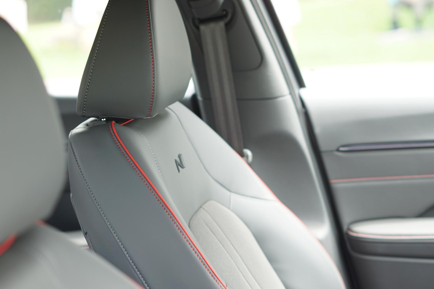 內飾方面也有些變動,這臺實拍的N Line版本車型采用的是碳纖維紋理飾板,紅色縫線強調運動氛圍。全新的三輻式方向盤更好抓握,并且方向盤的LOGO竟然是采用了摩斯密碼理念的H,你發現了嗎?另外換擋機構變更為旋轉式電子懷擋,并且雙連屏呈現曲面效果,方便駕駛員操作。空調面板和多媒體控制區域增加旋鈕按鍵,方便開車過程中盲操,人性化的設計值得一個好評。