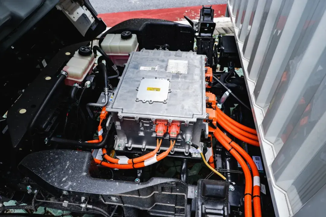 E路達的電機配備博世高扭矩扁線電機技術,加上SiC多合一控制器技術,能夠增大功率,最大輸出功率可達167千瓦,最大扭矩可達420牛·米,電機效率達97%。整車0-50km/h加速時間僅需4.9s,滿載最大爬坡32%。簡單來說,這一技術滿足全地形滿載運輸工況。