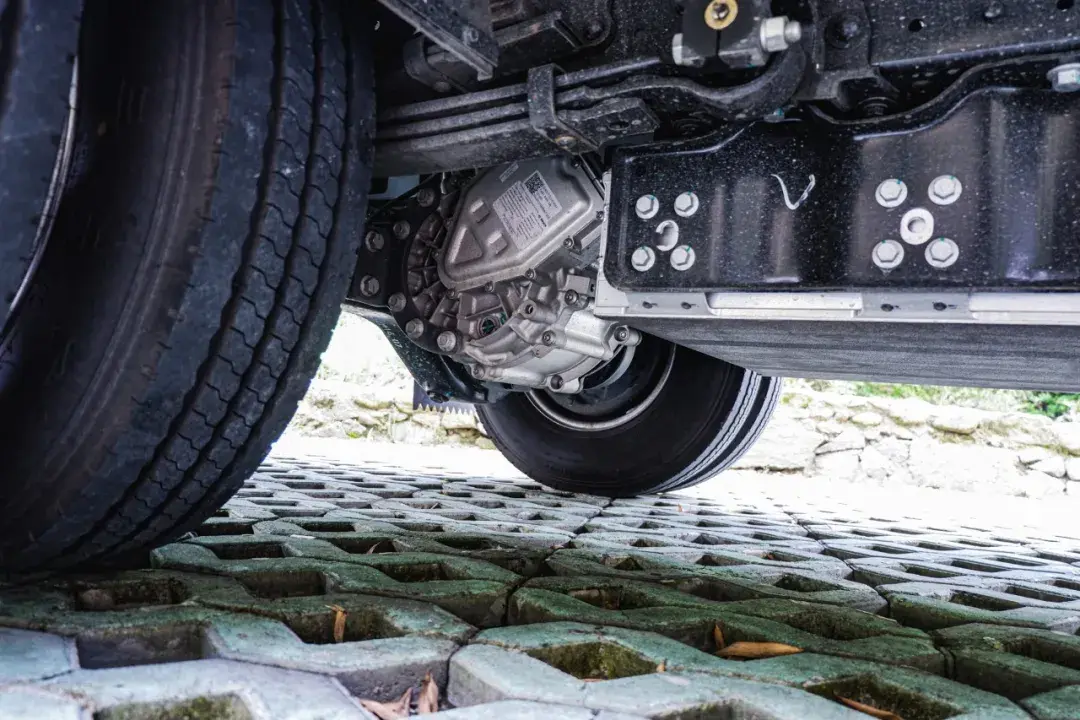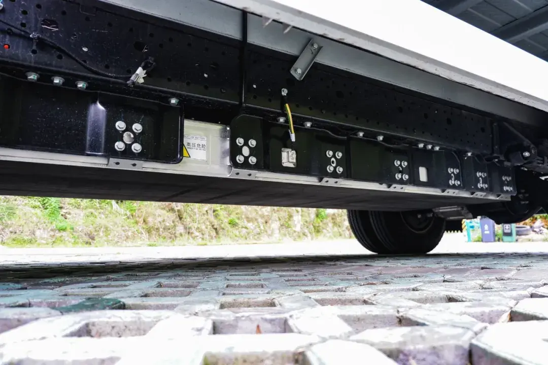 與一些油改電輕卡不同,E路達是江鈴正向研發而來。E路達基于行業首個正向開發的新能源純電輕卡平臺打造,該平臺首創電池包與車架PTC結構方案,且運用偏置式電驅后橋。這些創新設計使得底盤布局更加緊湊,整車重量更輕,極大地提升了整車的效能和可靠性。