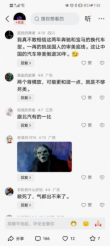 擔心這個網站言論過于偏駁,就又換了幾個網站,發現網友評價更加刻薄,也更加犀利,從對兩個大鼻孔的設計,上升到挑戰審美的層級,再上升到“一再挑戰國人審美底線,汽車審美倒退30年”的高度。