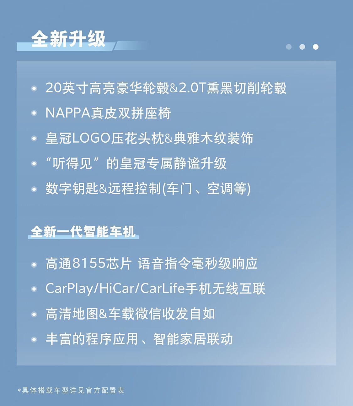 在內飾部分,新車則主要對配置進行升級,搭載了全新的車機系統,智能性互聯性有著進一步的增強,高通驍龍8155車機芯片已經成為了新一代豐田高端車型的象征,并支持OTA無線升級,輔助駕駛系統也有著不錯的表現。Nappa真皮雙拼座椅,特殊頭枕壓花和面板等元素都不會缺席。支持安卓蘋果華為手機無線互聯,語音指令響應速度也更加迅捷,還有車載微信等功能,有效的提升了體驗。當然這些都是此前在新款格瑞維亞、賽娜車型上出現過的標配,相信消費者也已經較為熟悉。
