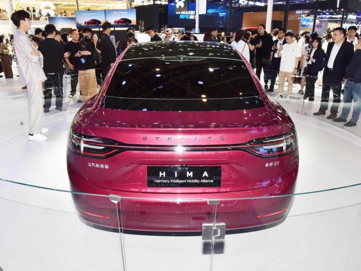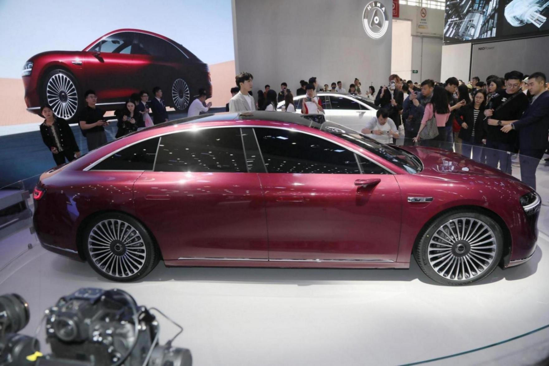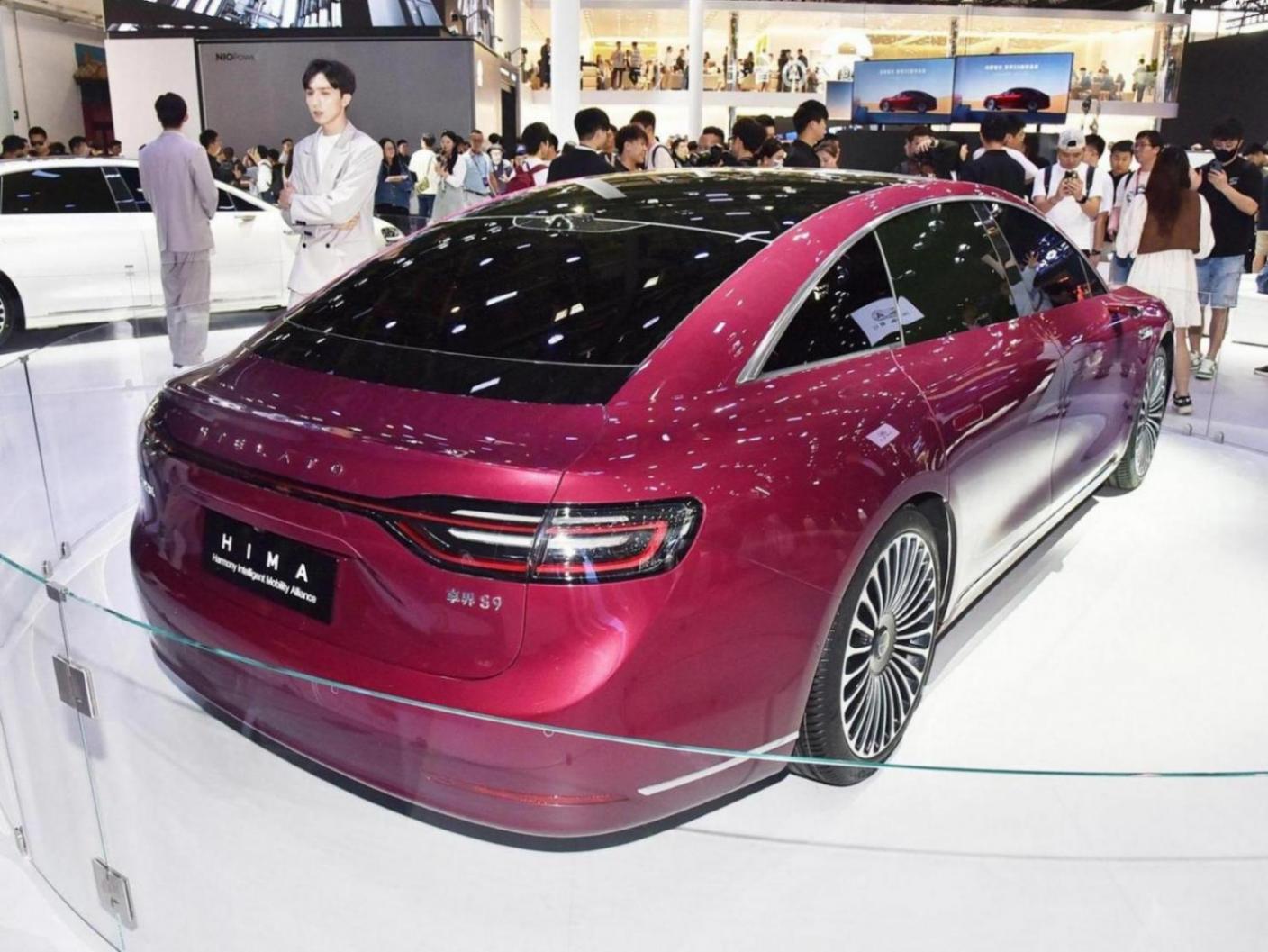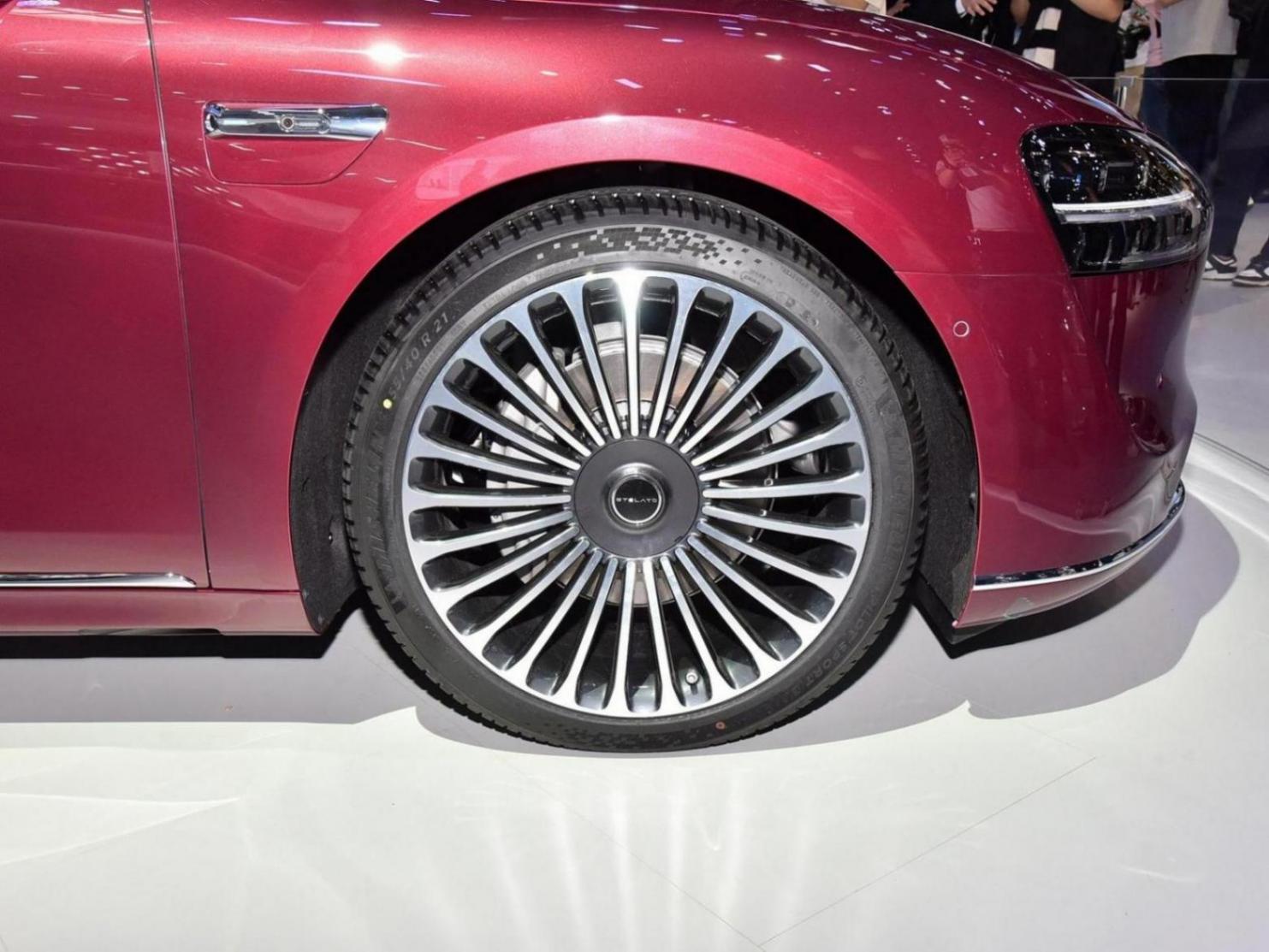 車身側面,溜背車頂過渡有著相對靠后的C柱設計,大尺寸輪轂采用了大氣的多幅造型,似乎也沒有太考慮風阻系數的元素,不過整個車身確實相當的流暢,沒有過多的設計元素加上虛擬后視鏡,無框車門,隱藏車門把手等元素有著不錯的未來感。車尾部分貫穿式尾燈左右兩側加粗加入了層次感更加豐富的復雜造型,似乎是不像頭燈那樣可以顯示復雜的燈語,但辨識度也有著不錯的表現,尾箱蓋有著翹起的小鴨尾,后保險杠部分再度突出,提升了立體的感覺,沒有采用任何黑色設計,也顯示了大氣的風格。