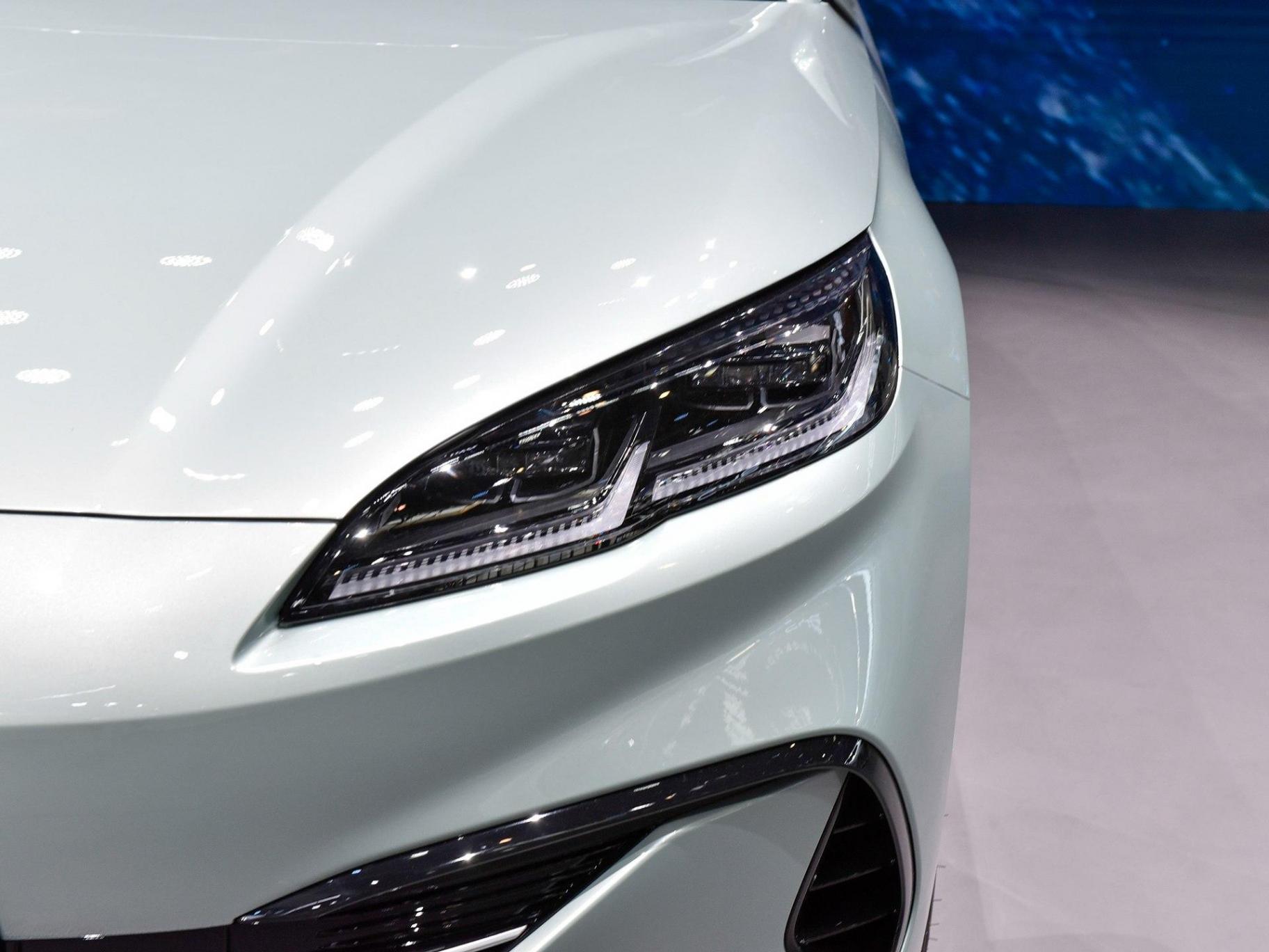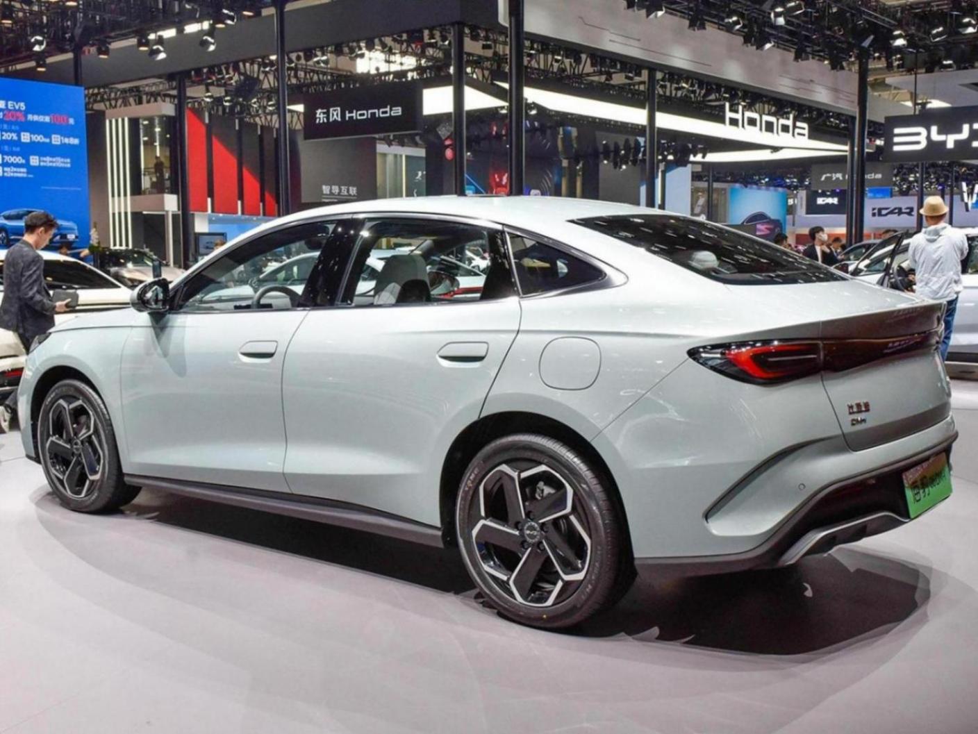 車身側面新車則有著溜背轎跑式的線條,比驅逐艦05更加大氣,車身三圍4830/1875/1495毫米,軸距為2790毫米,定位中型轎車,不論軸距是否有爭議,但尺寸確實是標準的中型水平,隱藏著車門把手,大尺寸輪轂等元素也不會缺席。車尾部分貫穿式的尾燈同樣引領了最新的家族設計,隨后將出現在海洋網的不少車型之上,雙彎折式的紅色燈帶鑲嵌于灰色底面之上,顯示出不錯的辨識度。尾燈線條與海豹EV有幾分相似,略帶凹陷后保險杠部分采用了復雜的特殊裝飾,讓整車的風格形成統一。