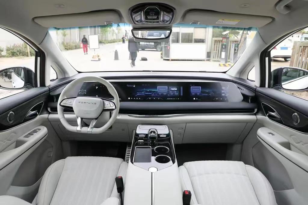 車內采用一體式大聯屏,由12.3英寸全液晶儀表+16.2英寸中控屏+12.3英寸副駕娛樂屏組成,還加入有大面積黑色鋼琴烤漆材質,配合雙拼內飾配色,整體呈現出的視覺效果在MPV中比較不錯。