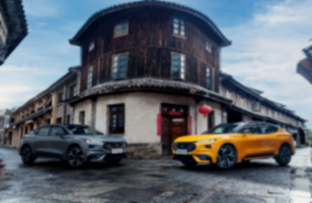 從實車圖來看,新車一眼就能看出脫胎于福特EVOS的身份,設計風格與現款EVOS高度相似。在外觀方面,新車提供普通版與ST-line兩種造型,主要是前后保險與車身包圍有差異,另外ST-line版還擁有20英寸鋁合金輪輞、紅色剎車卡鉗、嘯日橙雙色車身等外觀套件。
